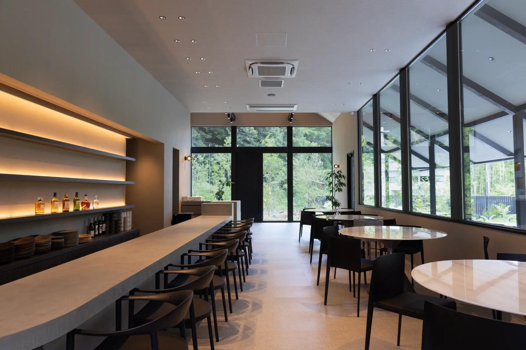 ゲストには、自然を眺めながら、その季節にぴったりの食体験ができる、開放的なレストランを。